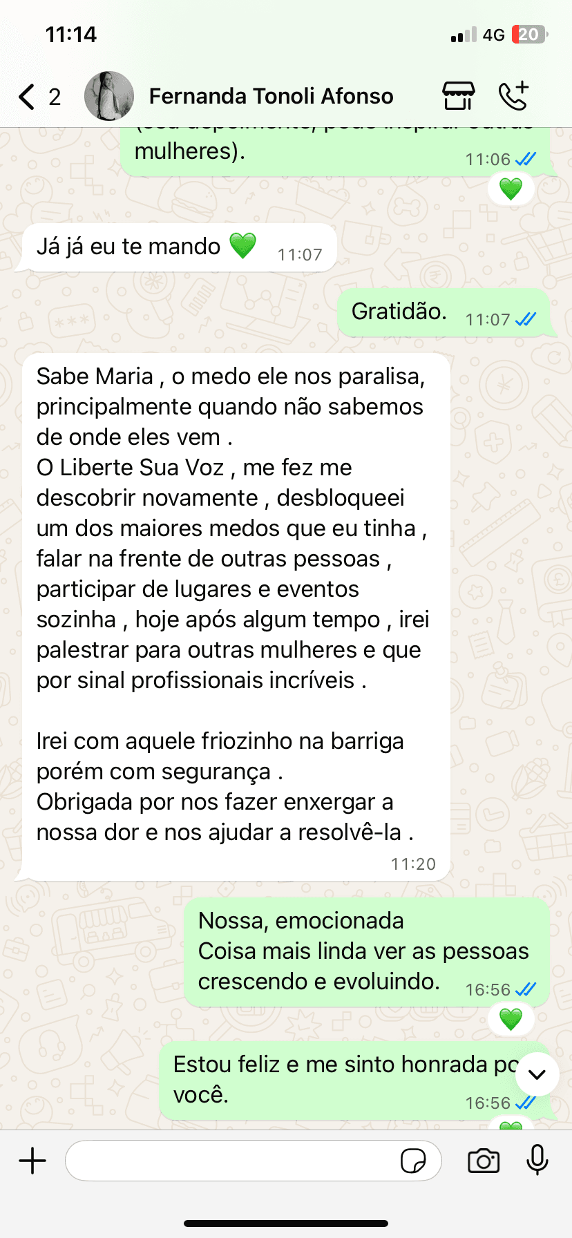 Acredita que a voz é uma das maiores ferramentas de transformação que o ser humano possui, e é através dela que se conquista segurança, influência e liberdade.